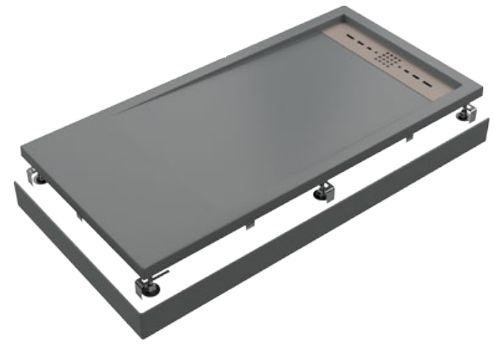 Основным материалом для изготовления поддона является натуральный мрамор, измельченный до определенной фракции, связующим элементом служит полимерная смола, придающая изделию высокую прочность и твердость. Рабочая поверхность поддона покрыта специальным материалом (гелькоут), который в процессе технологической обработки приобретает свойства (прочность и твердость) не уступающие свойствам глазури, использующейся на изделиях из санфаянса и керамики – поддонов, раковин и др. Для безопасного использования поддон имеет антискользящую поверхность. Материалы, использующиеся при производстве поддонов из литьевого мрамора и конструктивные особенности (толщина стенок) делают его практически бесшумным по сравнению с другими видами душевых поддонов – стальными, акриловыми и др.