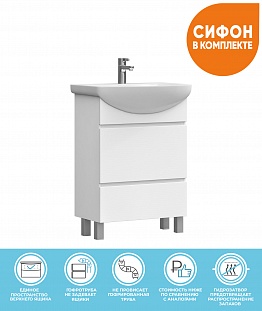 Тумба с раковиной подвесная "Бали 60" 2 ящика со столешницей БЕЛЫЙ СОФТ