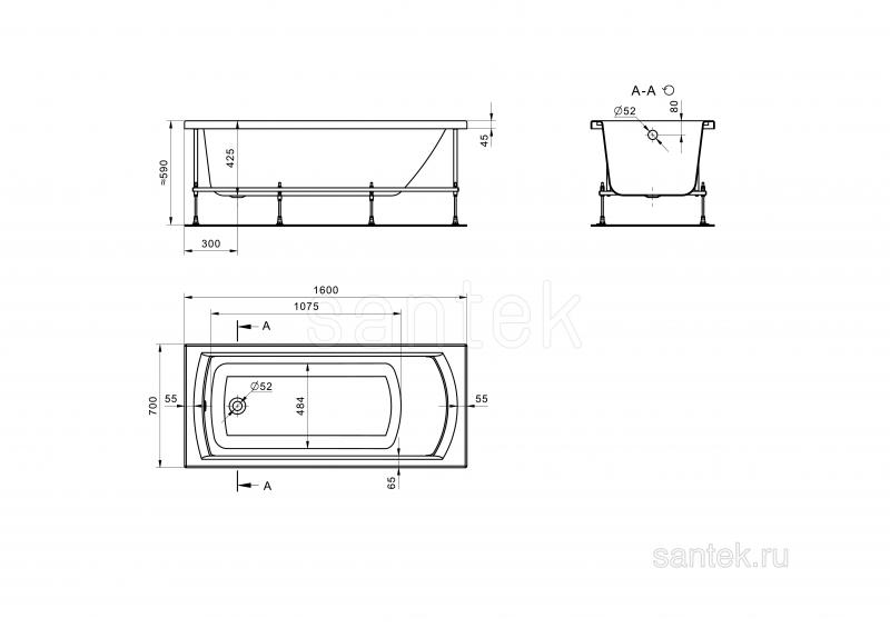 Ванны Santek производятся из 100% литьевого акрила, что обеспечивает длительную эксплуатацию изделия и полностью исключает опасность расслоения. Ванны долгое время сохраняют тепло, обладают стойкостью к химическим и физическим воздействиям, легки в уходе. Белоснежно-белый цвет акрила идеально совпадает с цветом керамики Santek. Усовершенствованная конструкция металлического опорного каркаса ванн Santek придает надежную устойчивость конструкции, новый способ крепления панелей к ванне гарантирует привлекательный внешний вид, легкость и простоту сборки. Акриловые ванны Santek дополнительно поставляются в комплекте с фронтальными и боковыми панелями, каркасом, системой слив-перелив с сифоном, креплениями ванны к стене и комплектом креплений фронтальной панели. Возможна комплектация упрощенным каркасом (ножки).