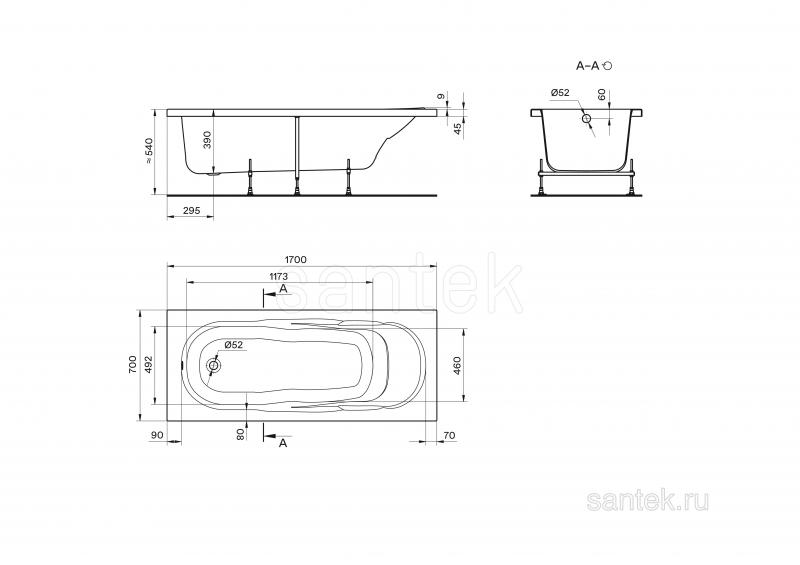 Акриловая ванна Santek Касабланка М 170х70 прямоугольная белая 1WH501531 в интернет-магазине Водолей Сергиев Посад
