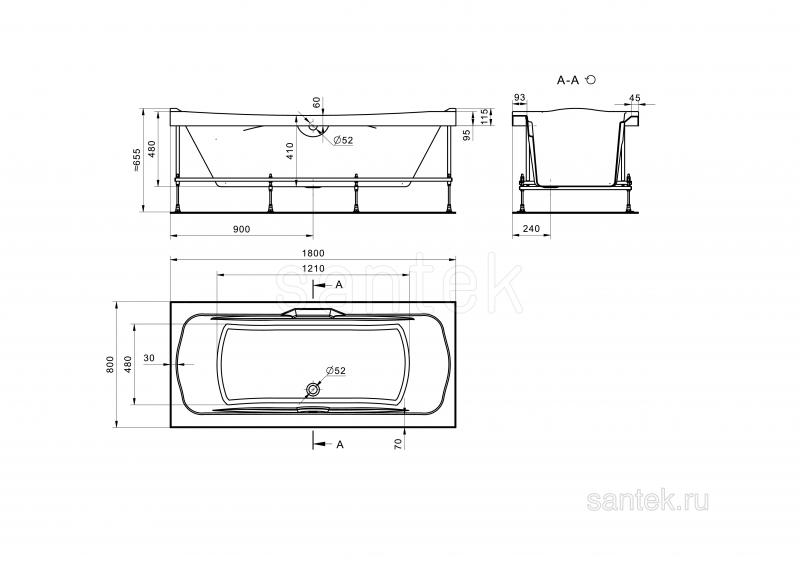 Ванны Santek производятся из 100% литьевого акрила, что обеспечивает длительную эксплуатацию изделия и полностью исключает опасность расслоения. Ванны долгое время сохраняют тепло, обладают стойкостью к химическим и физическим воздействиям, легки в уходе. Белоснежно-белый цвет акрила идеально совпадает с цветом керамики Santek. Усовершенствованная конструкция металлического опорного каркаса ванн Santek придает надежную устойчивость конструкции, новый способ крепления панелей к ванне гарантирует привлекательный внешний вид, легкость и простоту сборки. Акриловые ванны Santek дополнительно поставляются в комплекте с фронтальными и боковыми панелями, каркасом, системой слив-перелив с сифоном, креплениями ванны к стене и комплектом креплений фронтальной панели. Возможна комплектация упрощенным каркасом (ножки).
