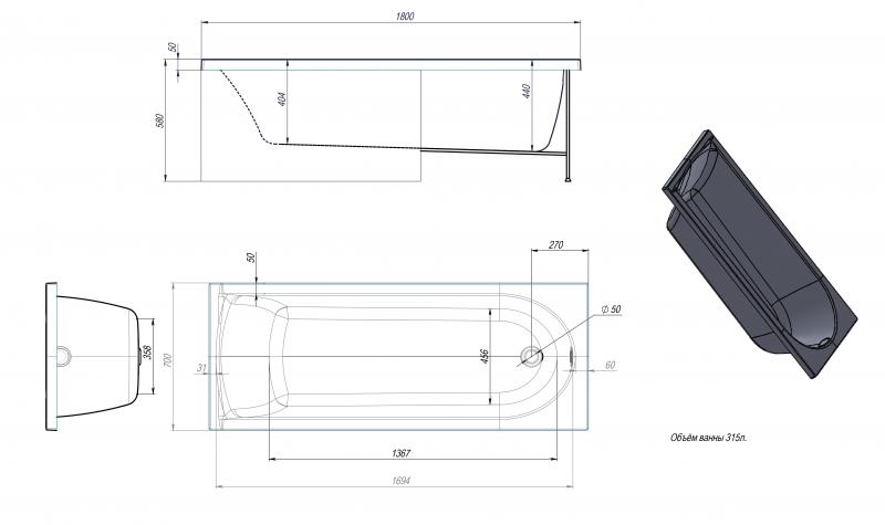Акриловая ванна TIMO MIKA 1800*700*580 (MIKA1870) в интернет-магазине Водолей Сергиев Посад