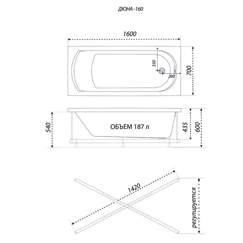 Ванна 1ACreal Дюна 160х70 в интернет-магазине Водолей Сергиев Посад