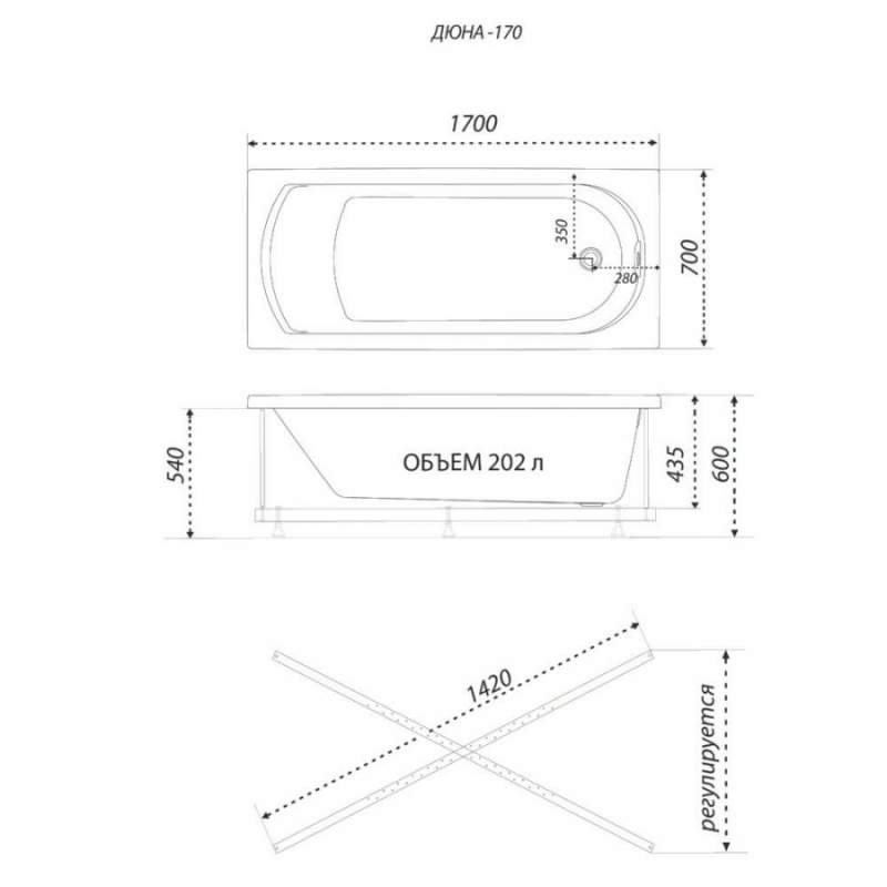 Ванна 1ACreal Дюна 170х70 в интернет-магазине Водолей Сергиев Посад