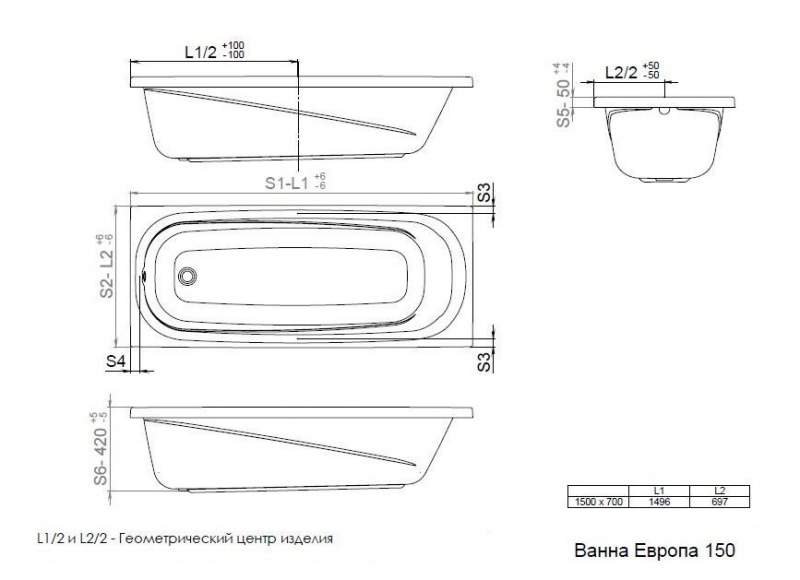 Ванна 1ACreal Европа 150х70 в интернет-магазине Водолей Сергиев Посад