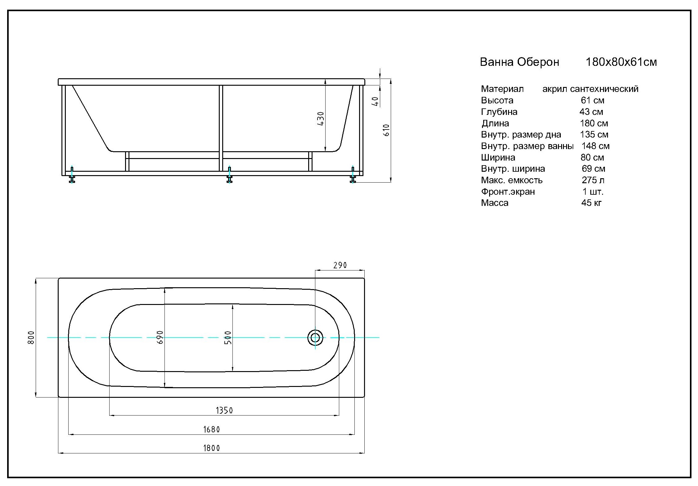 Ванна Акватек Оберон 180х80 с экраном в интернет-магазине Водолей Сергиев Посад