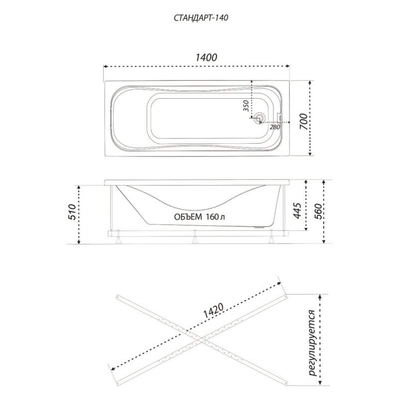 Ванна Triton Стандарт 140х70 Экстра в интернет-магазине Водолей Сергиев Посад