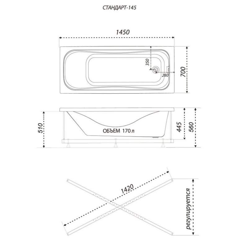 Ванна Triton Стандарт 145х70 Экстра в интернет-магазине Водолей Сергиев Посад