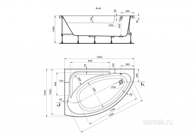 Ванны Santek производятся из 100% литьевого акрила, что обеспечивает длительную эксплуатацию изделия и полностью исключает опасность расслоения. Ванны долгое время сохраняют тепло, обладают стойкостью к химическим и физическим воздействиям, легки в уходе. Белоснежно-белый цвет акрила идеально совпадает с цветом керамики Santek. Усовершенствованная конструкция металлического опорного каркаса ванн Santek придает надежную устойчивость конструкции, новый способ крепления панелей к ванне гарантирует привлекательный внешний вид, легкость и простоту сборки. Акриловые ванны Santek дополнительно поставляются в комплекте с фронтальными и боковыми панелями, каркасом, системой слив-перелив с сифоном, креплениями ванны к стене и комплектом креплений фронтальной панели. Возможна комплектация упрощенным каркасом (ножки).