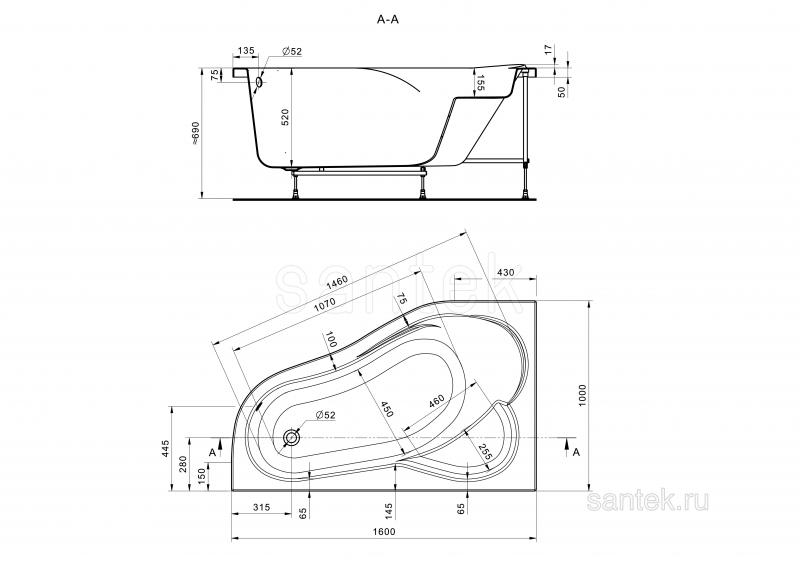 Ванны Santek производятся из 100% литьевого акрила, что обеспечивает длительную эксплуатацию изделия и полностью исключает опасность расслоения. Ванны долгое время сохраняют тепло, обладают стойкостью к химическим и физическим воздействиям, легки в уходе. Белоснежно-белый цвет акрила идеально совпадает с цветом керамики Santek. Усовершенствованная конструкция металлического опорного каркаса ванн Santek придает надежную устойчивость конструкции, новый способ крепления панелей к ванне гарантирует привлекательный внешний вид, легкость и простоту сборки. Акриловые ванны Santek дополнительно поставляются в комплекте с фронтальными и боковыми панелями, каркасом, системой слив-перелив с сифоном, креплениями ванны к стене и комплектом креплений фронтальной панели. Возможна комплектация упрощенным каркасом (ножки).