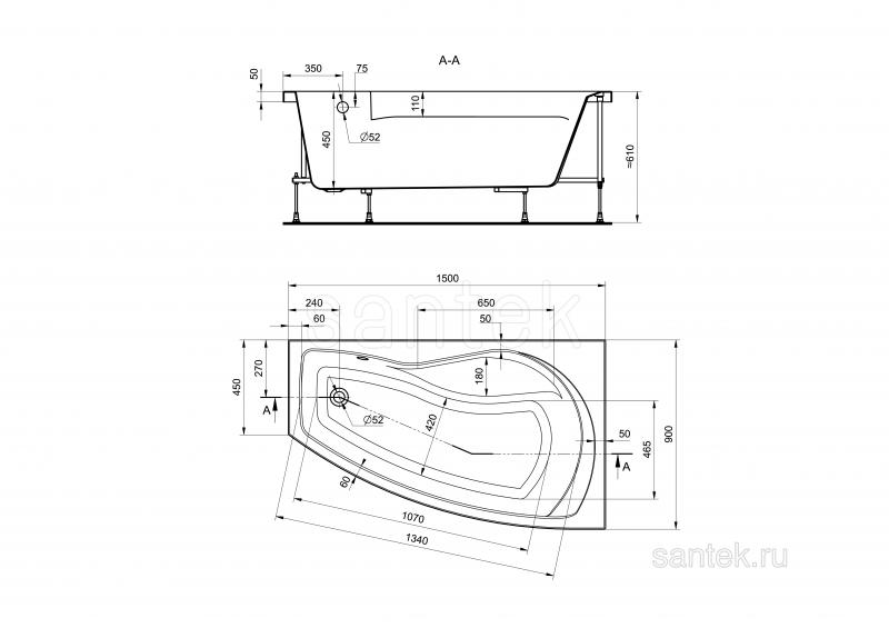 Ванны Santek производятся из 100% литьевого акрила, что обеспечивает длительную эксплуатацию изделия и полностью исключает опасность расслоения. Ванны долгое время сохраняют тепло, обладают стойкостью к химическим и физическим воздействиям, легки в уходе. Белоснежно-белый цвет акрила идеально совпадает с цветом керамики Santek. Усовершенствованная конструкция металлического опорного каркаса ванн Santek придает надежную устойчивость конструкции, новый способ крепления панелей к ванне гарантирует привлекательный внешний вид, легкость и простоту сборки. Акриловые ванны Santek дополнительно поставляются в комплекте с фронтальными и боковыми панелями, каркасом, системой слив-перелив с сифоном, креплениями ванны к стене и комплектом креплений фронтальной панели. Возможна комплектация упрощенным каркасом (ножки).