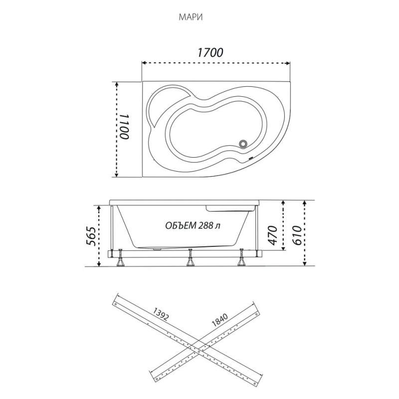 Ванна Triton Мари 170х110 правая в интернет-магазине Водолей Сергиев Посад