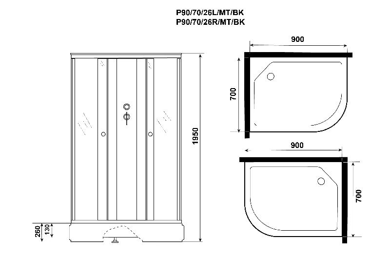 Душевая кабина Niagara Promo P90/70/26R/MT/BK 90х70 в интернет-магазине Водолей Сергиев Посад