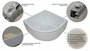 Поддон ПД 5 глубокий полукруг 90х90 Обрезанный (без сиденья)