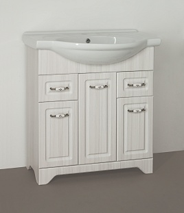 Тумба с раковиной Style Line напольная Ассоль 80 (2 ящ.), Комо 80, Люкс техно платина, PLUS