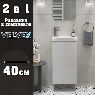Тумба с раковиной подвесная Velvex Bio белый глянец, 40 см