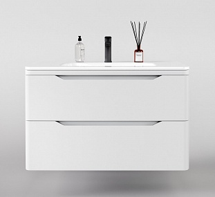 Тумба подвесная "Марелла 80" (2 ящ.) Люкс антискрейтч белый глянец, PLUS