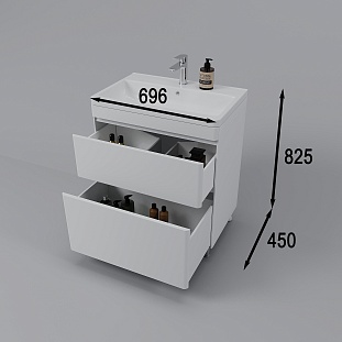 Тумба VIANT "Мюнхен" 2 ств со столешницей L70 подвесная белая 510х680х646 (VMUN70NBEL-T2STP)