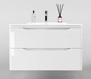 Тумба подвесная "Марелла 90" (2 ящ.) Люкс антискрейтч белый глянец, PLUS