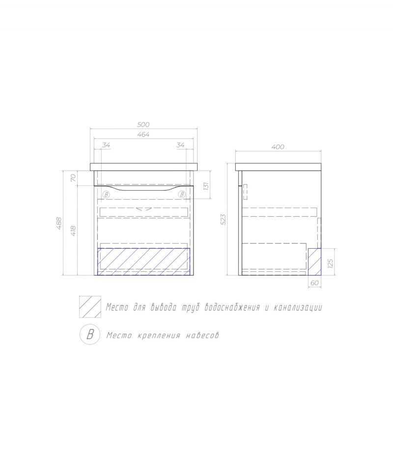 Тумба с раковиной подвесная VIGO Grani 50 см в интернет-магазине Водолей Сергиев Посад
