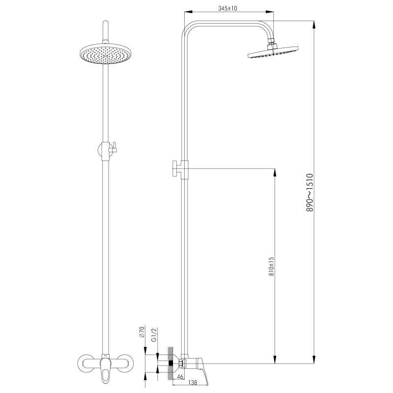 Смеситель Rossinka B35-44 для душа с регулируемой высотой штанги и лейкой "Тропический дождь" в интернет-магазине Водолей Сергиев Посад