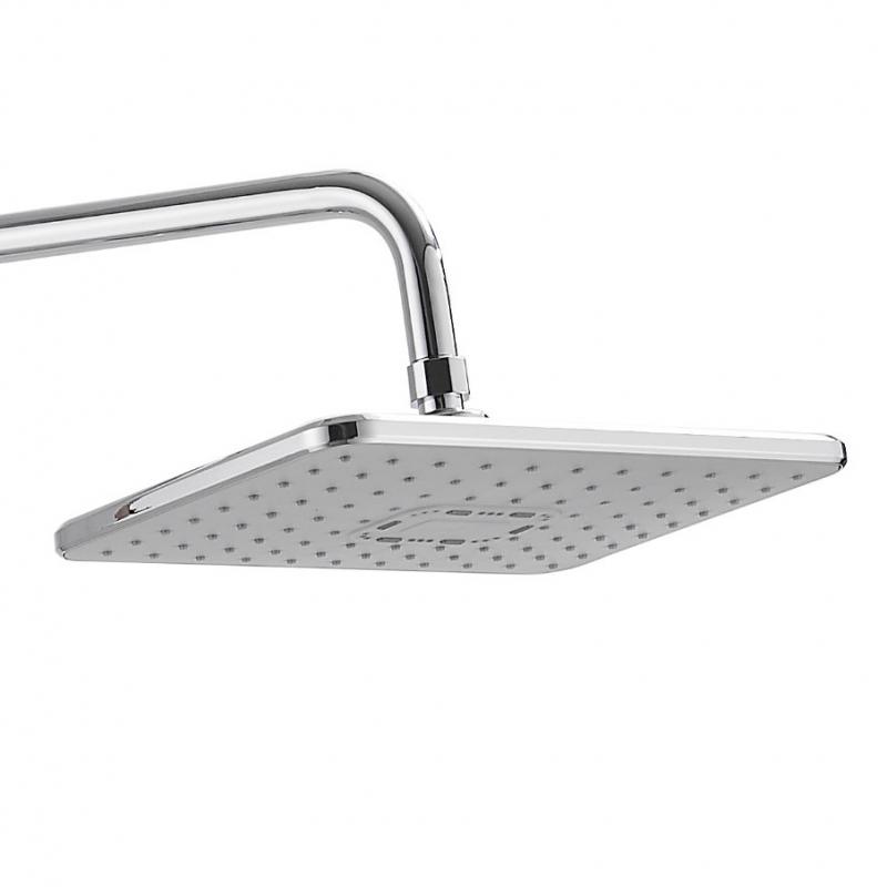 - Комплектация: смеситель, верхний душ, душевая лейка, держатель душевой лейки, шланг, стойка