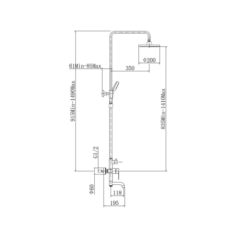 штанга: сталь SUS304, чёрная, H=835-1410 мм