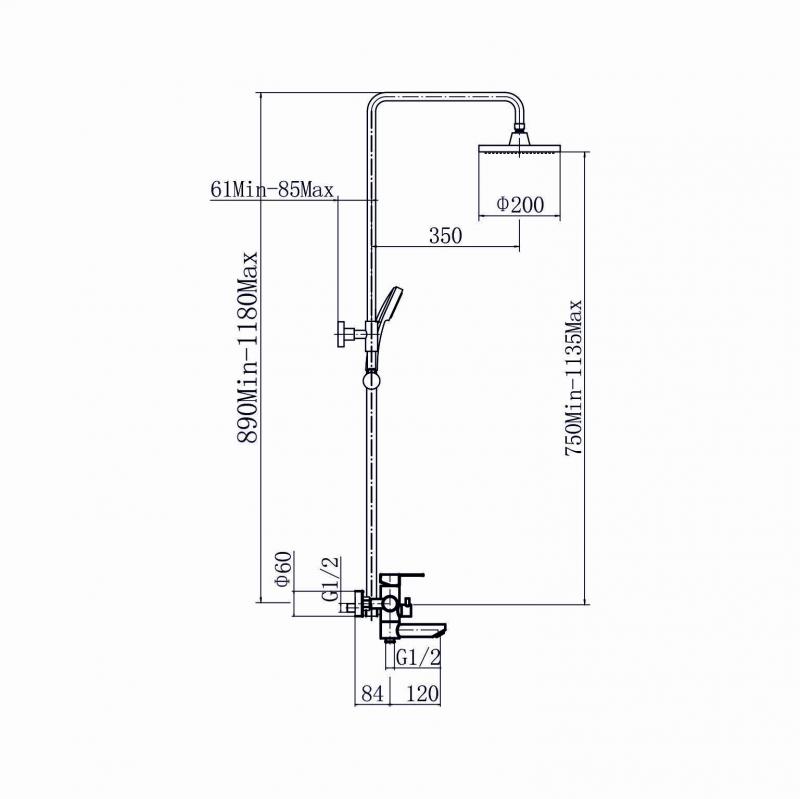 штанга: чёрная, сталь SUS304, сатин, H=750-1135 мм