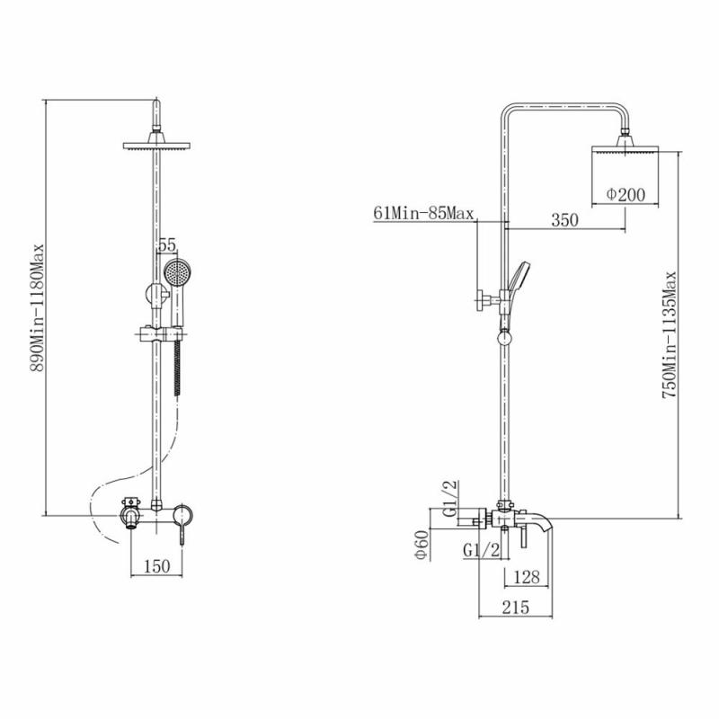 штанга: сталь SUS201, хром, H=750-1135 мм