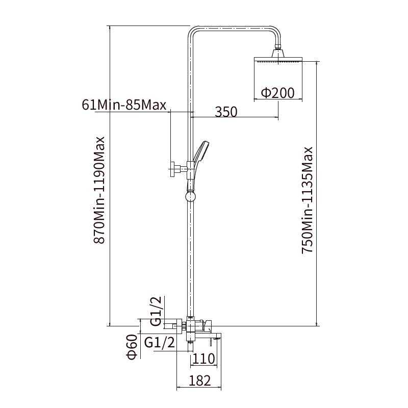 штанга: сталь SUS201, хром, H=750-1135 мм, хром