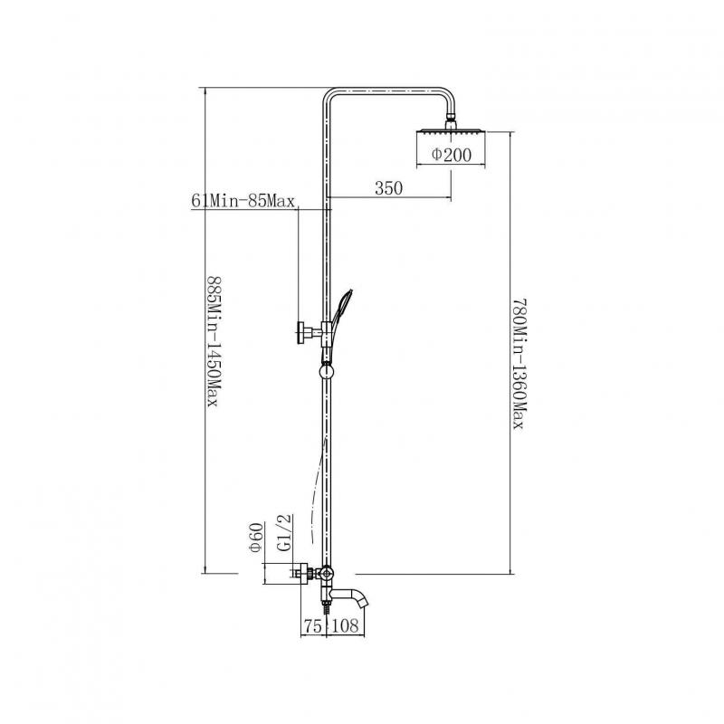 штанга: сталь SUS304, H=780-1360 мм (от верхнего излива), сатин