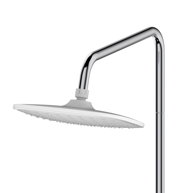 - Комплектация: верхний душ, душевая штанга, держатель душевой лейки, ручной душ, смеситель, шланг