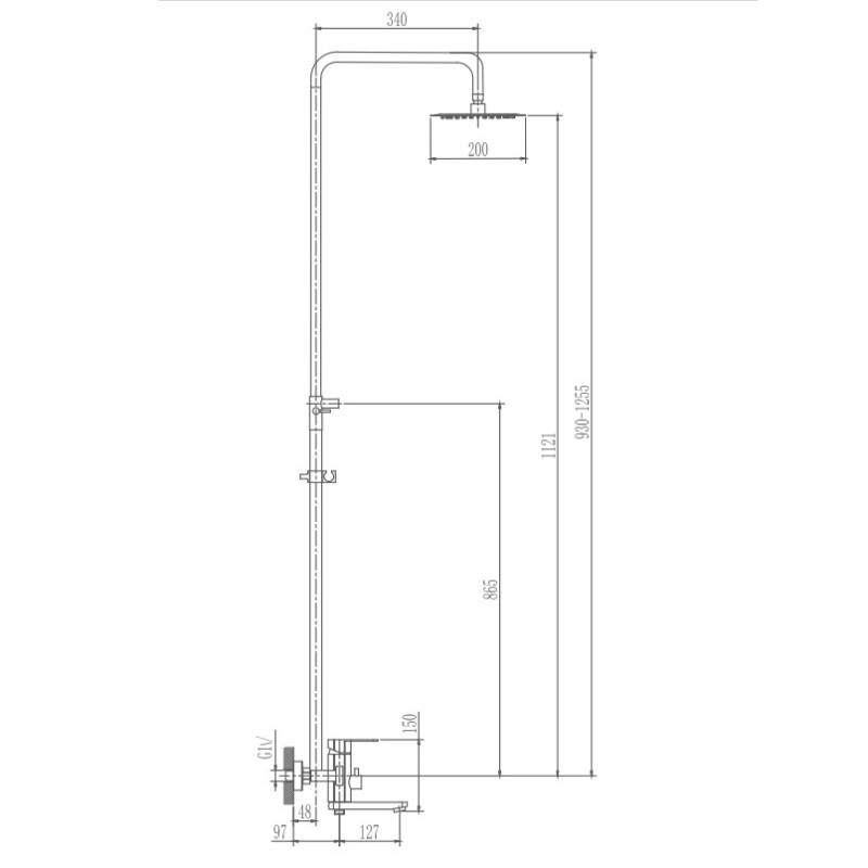 - Комплектация: верхний душ, душевая штанга, держатель душевой лейки, ручной душ, смеситель, шланг