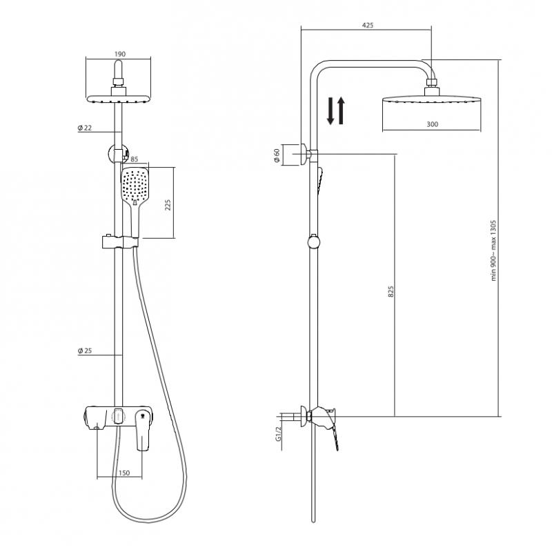 В комплекте 2x- режимная душевая лейка, 1-режимный тропический душ, изготовленный из современной прочной пластмассы с никель-хромированным покрытием, душевая штанга, держатель душевой лейки поворотный, душевой шланг с латунными гайками 150см, смеситель, индивидуальный пакет, паспорт, гарантийный талон.