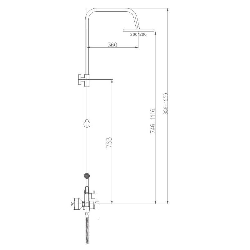 - Комплектация: верхний душ, душевая штанга, держатель душевой лейки, ручной душ, смеситель, шланг, гигиенический душ