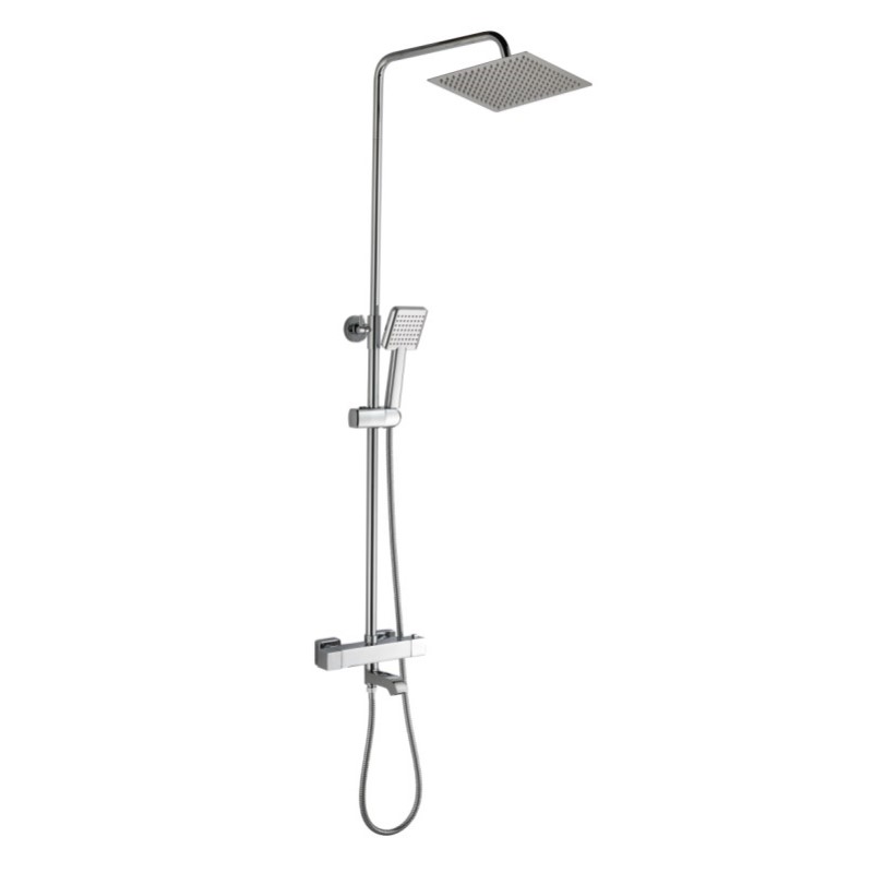 - Комплектация: верхний душ, душевая штанга, держатель душевой лейки, ручной душ, смеситель термостатический, шланг