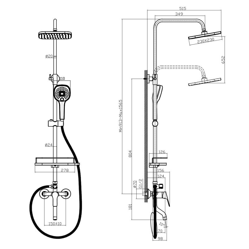 Смеситель Rossinka RS29-46 для ванны и душа с регулируемой высотой штанги, поворотным изливом и лейкой "Тропический дождь" в интернет-магазине Водолей Сергиев Посад