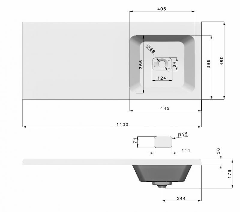 Раковина для ванной комнаты для установки над стиральной машинкой. Элегантная декоративная крышка и глубокая чаша, образуют между собой прекрасный баланс дизайна и практичности. Верхний слой Гелькоута формирует декоративно защитное покрытие. Раковина крепится на кронштейны. Может эксплуатироваться как самостоятельное изделие, так и со встроенной мебелью.
