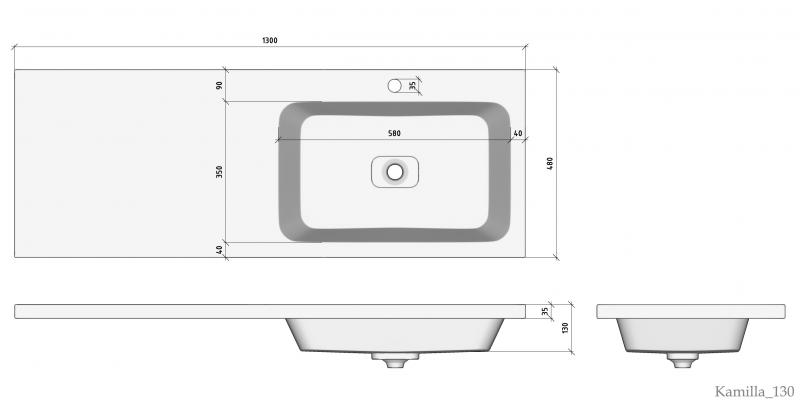 Раковина над стиральной машиной Kamilla 130, правая