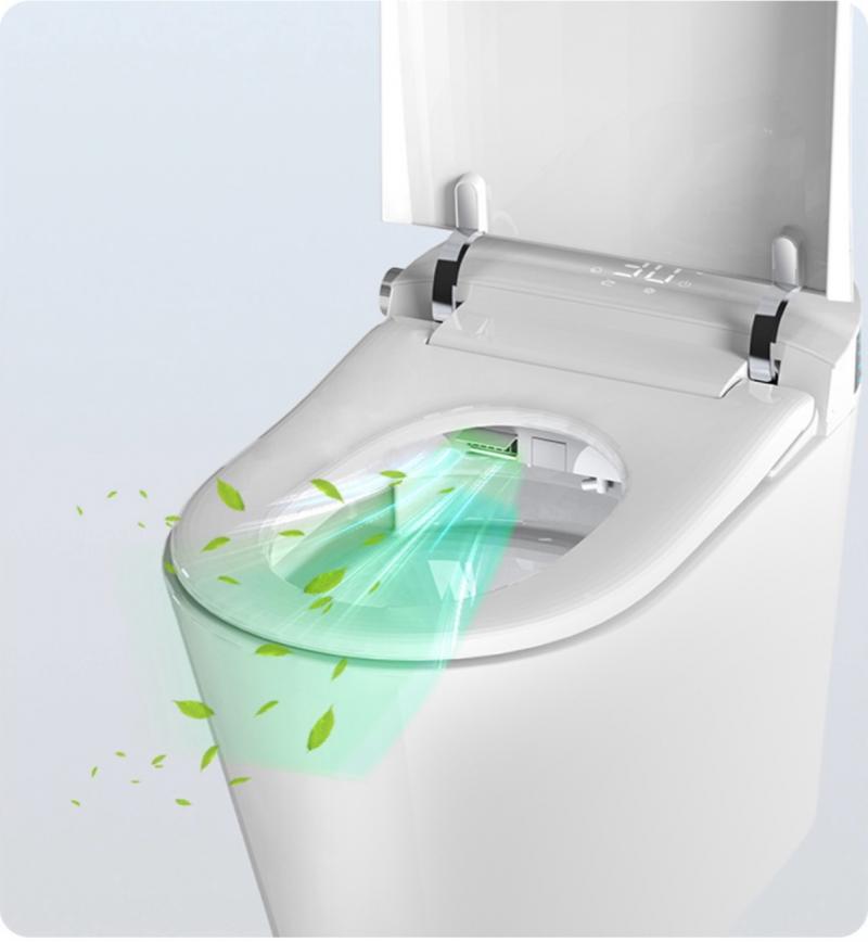Электронный унитаз оснащен встроенным резервуаром, автоматическим смывом, который также работает с отключенным питанием, сушкой, автоматическим открытием/закрытием крышки, регулировкой температуры сиденья, воды, сушки, давления, функциями биде, самоочищающей форсункой.ДУ пульт управления, боковая кнопка управления функциями, дисплей, ночная подсветка, открытие сиденья и крышки касанием ноги, спуск касанием ноги, UV стерилизация, режим клизмы, нано-антибактериальное покрытие сиденья
