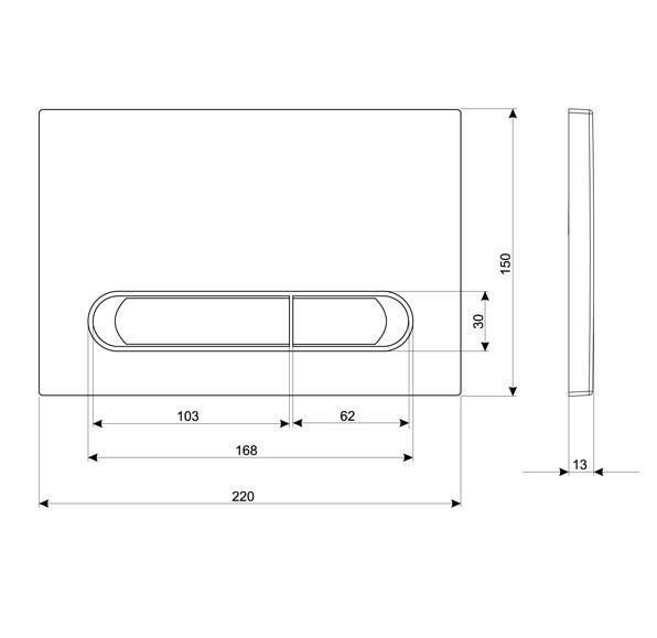 Кнопка изготовлена из пластика с глянцевым покрытием для двухуровневого механизма смыва