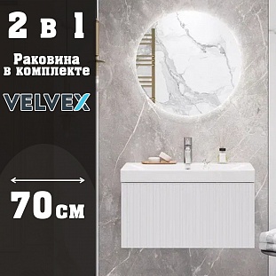 Тумба с раковиной подвесная Velvex Compo белый глянец, 70 см