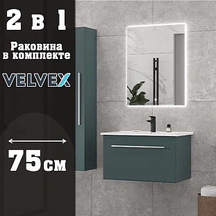 Тумба с раковиной подвесная Velvex Posse верде, 65 см