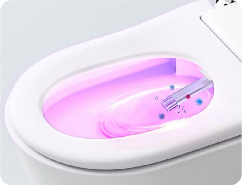 Электронный унитаз оснащен встроенным резервуаром, автоматическим смывом, который также работает с отключенным питанием, сушкой, автоматическим открытием/закрытием крышки, регулировкой температуры сиденья, воды, сушки, давления, функциями биде, самоочищающей форсункой.ДУ пульт управления,боковая кнопка управления функциями, дисплей, ночная подсветка, открытие сиденья и крышки касанием ноги, UV стерилизация, режим клизмы, нано-антибактериальное покрытие сиденья
